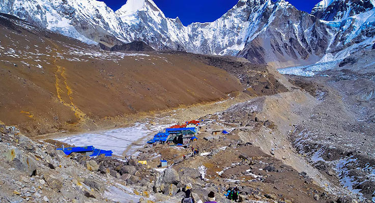Trek from Gorakshep to Dingboche (4,350m/14,272 ft)via Everest Base Camp (5,365m/17,602 ft)
